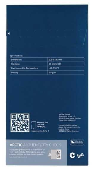 - + Достоинства термопрокладки ARCTIC COOLING TP-3: эффективная, простая в применении, надежная, высококачественная.