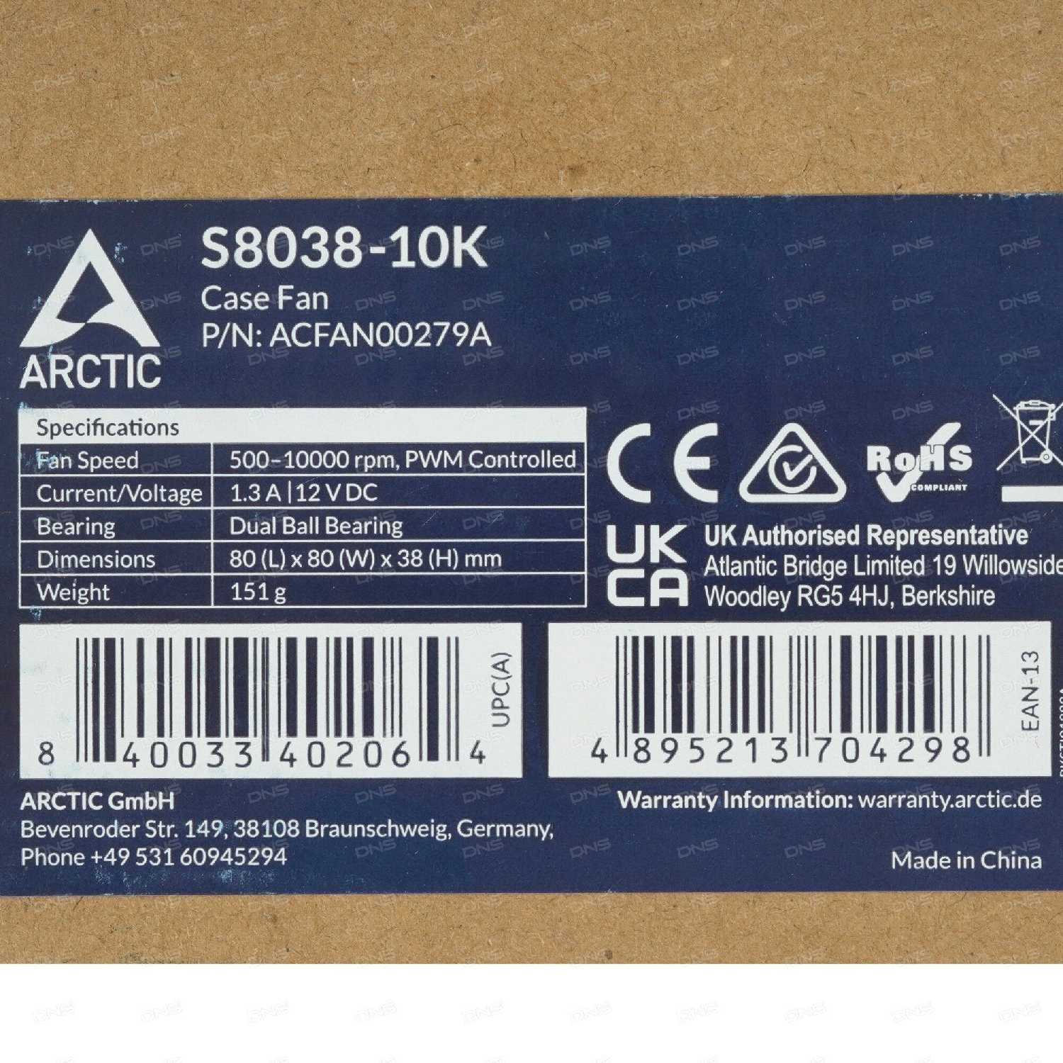 Характеристи Arctic Вентилятор 80x80x38 S8038-10K (ACFAN00279A)