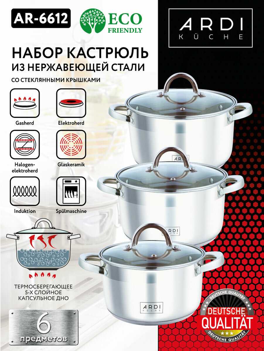 Набор кастрюль ARDI Kuche AR-6612 [6 предметов] — 69 отзывов, плюсы и минусы