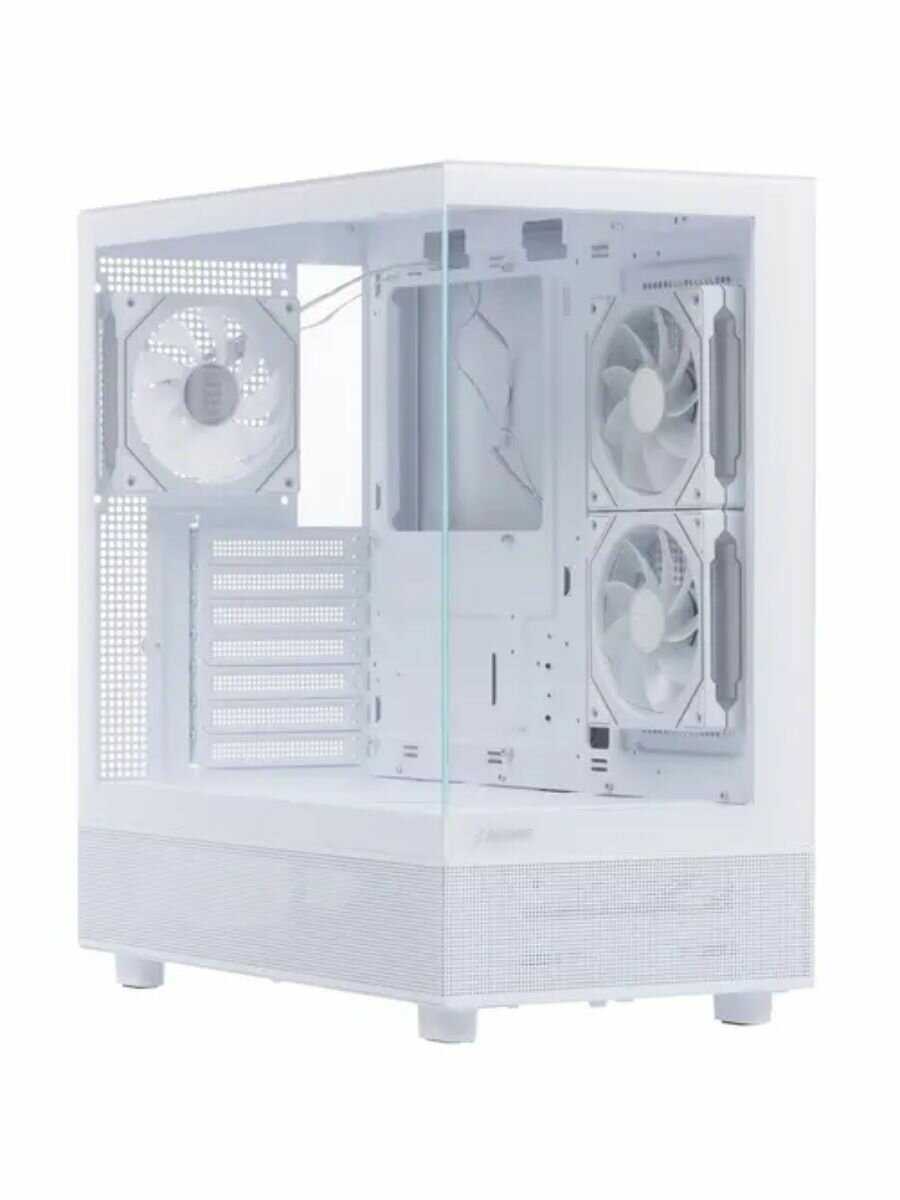Корпус поддерживает крупногабаритные видеокарты, включая модели RTX 40 серии (например, Palit RTX 4070 JetStream) и RX-серии. Пользователи отмечают запас пространства до 410 мм в длину, с минимальным зазором около 2 мм между картой и боковыми вентиляторами. Вертикальное крепление через съёмные ламели и райзер доступно, но требует проверки совместимости с конкретной моделью. Для особо массивных карт (например, KFA2 RTX 4060 Ti X White) рекомендуется предварительно замерить ширину радиатора, чтобы избежать конфликта с нижними вентиляторами. -