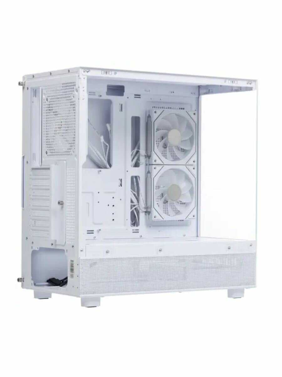 Корпус совместим с верхней СЖО 360 мм, боковой двухсекционной СЖО и кастомными жидкостными системами. Для воздушного охлаждения доступно 9 позиций под 120-мм вентиляторы (3 предустановлены). Пользователи успешно устанавливают башенные кулеры высотой до 165 мм (например, ID-Cooling SE-226-XT). Оптимальная конфигурация включает нижний вдув и верхний выдув, что снижает температуры процессора и GPU на 15–20°C по сравнению с базовой настройкой. -