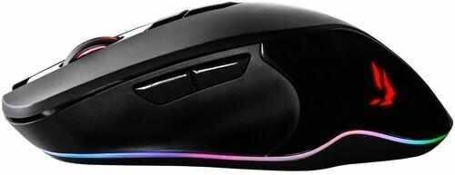 RGB-подсветка с настраиваемыми зонами (логотип, колесо, нижний контур) признана излишне яркой, особенно в темноте. Колесная подсветка слепит при прямом взгляде, а синие и красные оттенки субъективно комфортнее других. Деактивация света возможна комбинацией кнопки Mouse4 и колеса, но отдельные режимы остаются активными. Фирменное ПО позволяет настраивать макросы, цветовую палитру и DPI-ступени, однако смена прошивки скриптами сбивает предустановленные значения сенсора. Пользователи ценят встроенную память для хранения профилей.