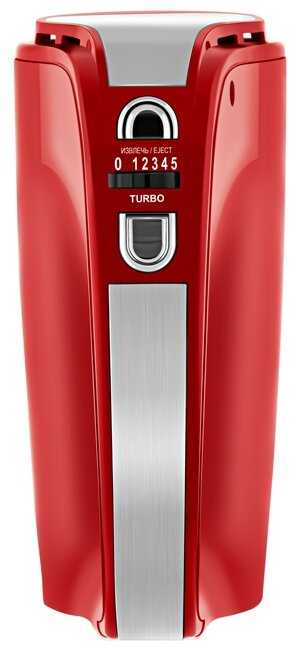 Мощный миксер, стильный дизайн, режим "турбо", 5 режимов скорости, два комплекта насадок: венчики для взбивания яиц и крема и насадки для звмешивания теста. Насадки надежно держаться и легко извлекаются нажатием кнопки.