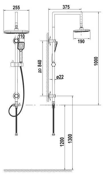 | Дополнительная информация : | размер верхнего душа - 255х190 мм, размер ручного душа - 120х110 мм |