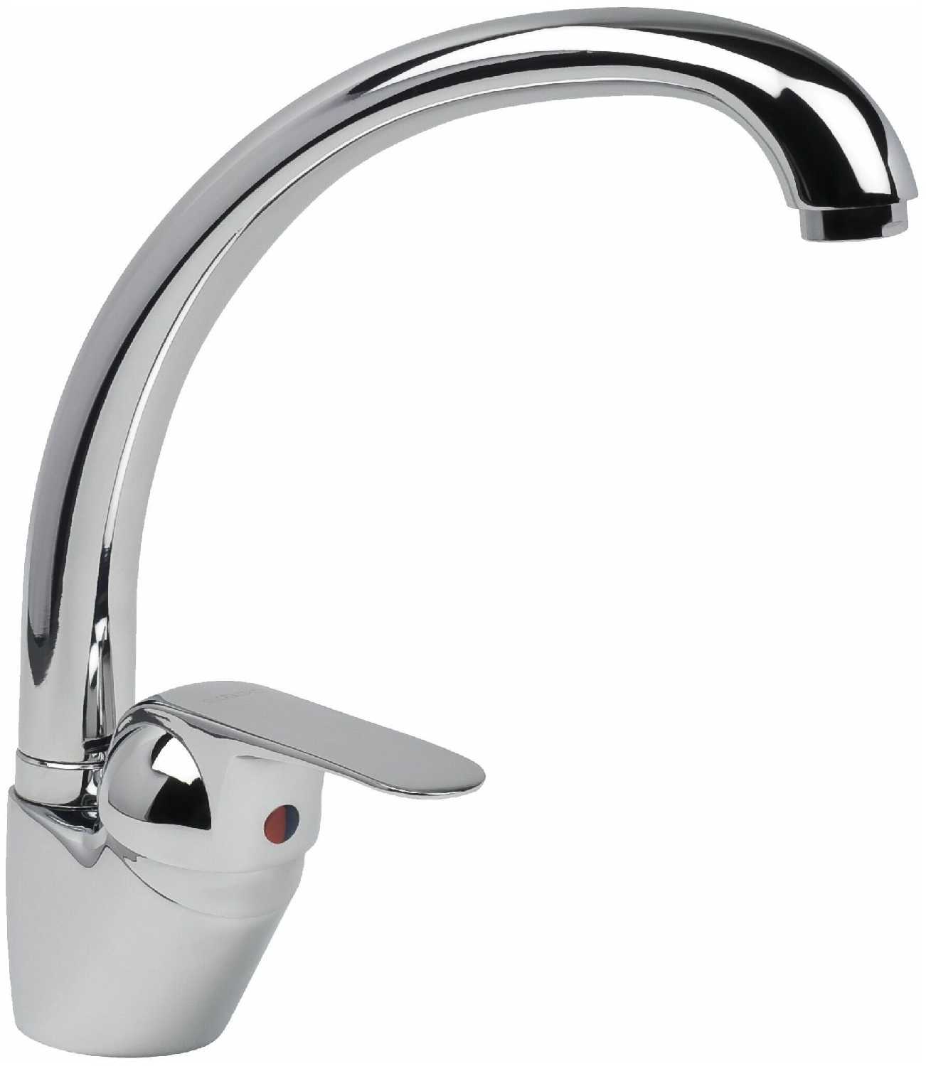 Смеситель с привлекательным внешним видом. Данная модель отличается ровными линиями и гладкими формами. Под краном весьма удобно мыть посуду разного размера.