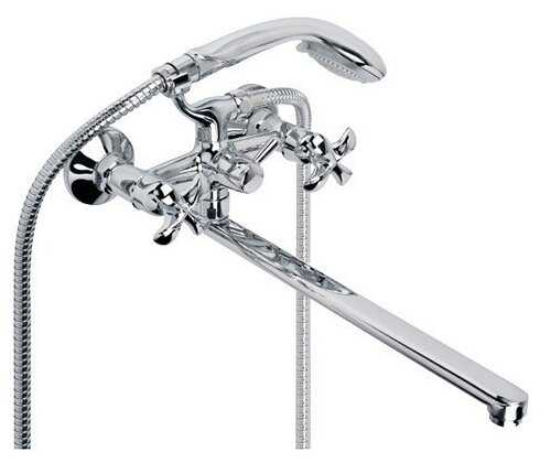 Длинный кран отлично подойдет для большой ванны, вода даже под сильным напором не разбрызгивается. Два вентиля очень удобные, регулировка воды очень проста.