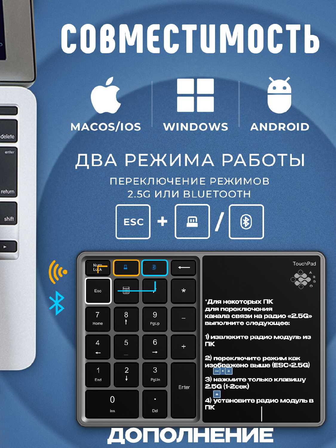 - - На macos(15.3.1) не переключается режим num lock, и для ввода доступны только цифры без клавиш перемещения. Неудобно что усб коннектор абсолютно некуда пристроить, и он совершенно неотличим по внешнему виду. Подключаюсь по bt и страшно его потерять.