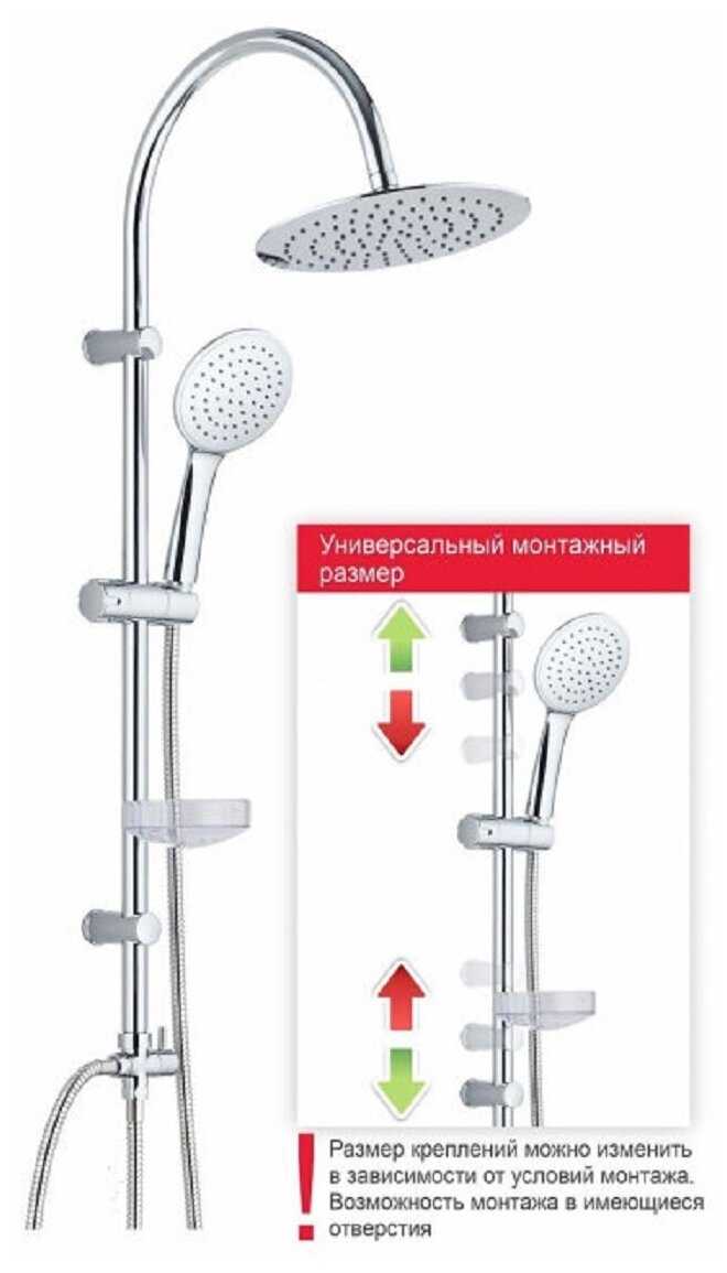 | Особенности : | антиизвестковое покрытие, держатель душевой лейки, регулируемый верхний душ |