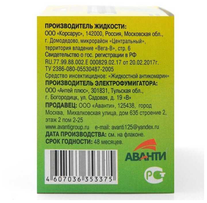 | Назначение : | отпугивание насекомых, уничтожение насекомых |