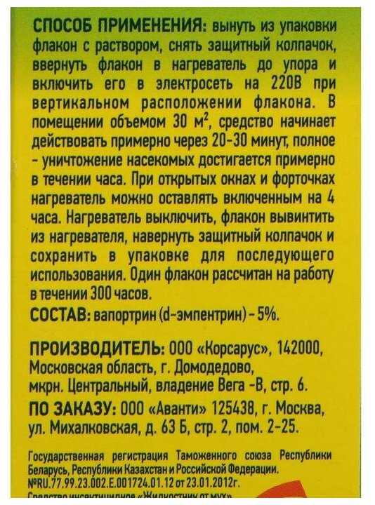 Назначение : | отпугивание насекомых, уничтожение насекомых |