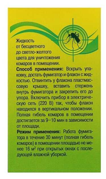 - + Эта жидкость прекрасно действует. Комары гибнут уже через 15-20 минут после включения фумигатора.