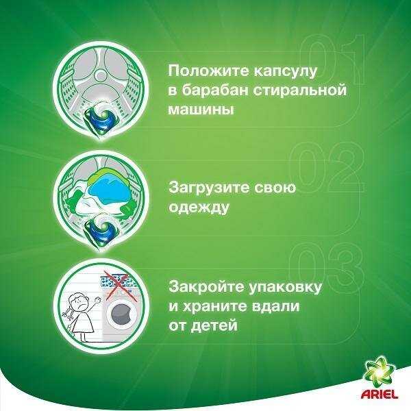 В последнее время словила себя на мысли, что я начала пользоваться только исключительно капсулами для стирки. Заметно для себя я поняла что капсулы на самом деле намного удобнее чем порошок. Я стираю довольно-таки кому дождались когда стиральная машина наполнится полностью потом иду туда капсулу и произвожу стирку. Нужно иметь в виду что с ariel нужно стирать на полных циклах стирки иначе она не успеет раствориться если поставить на режим спорт