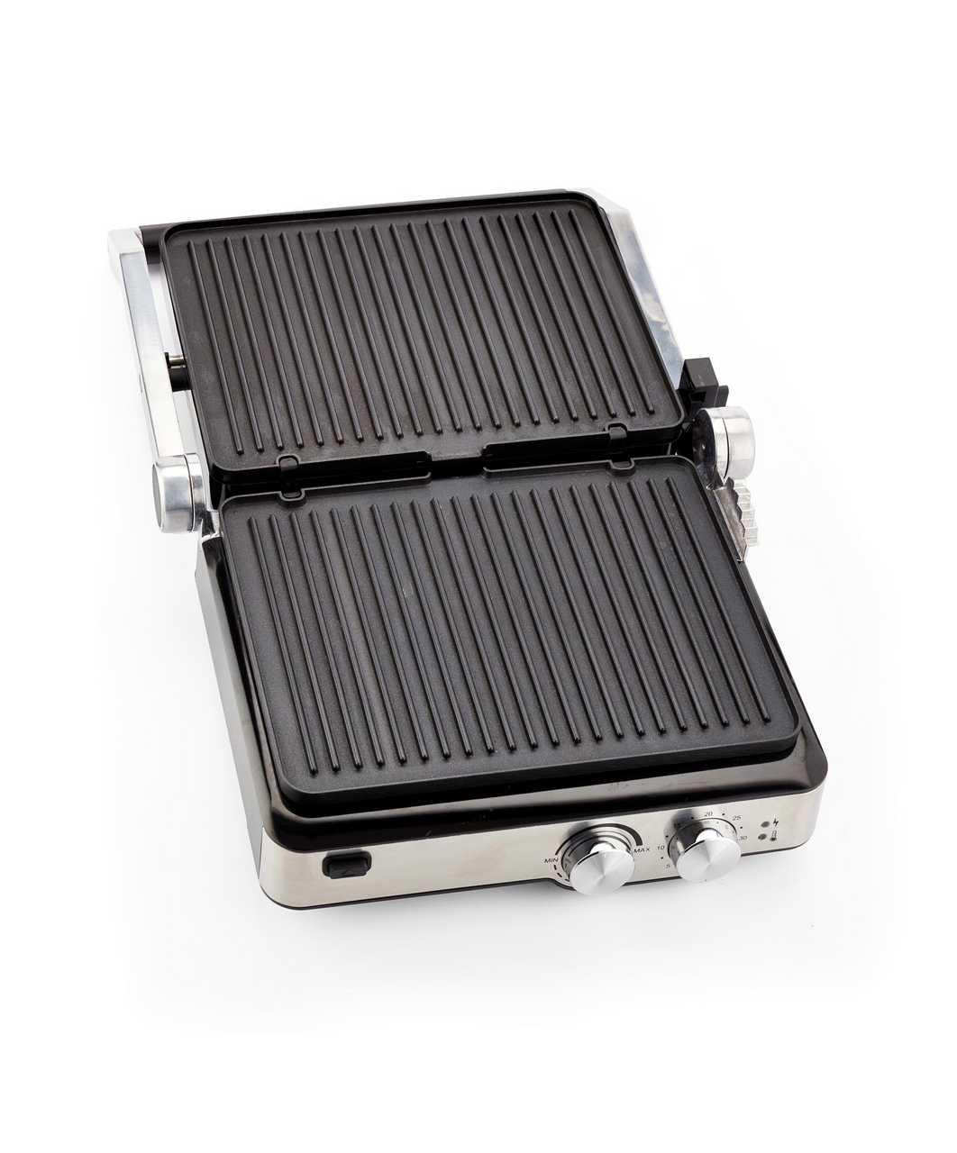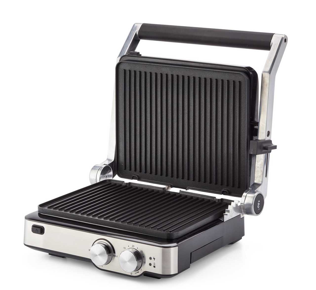 | Особенности : | антипригарное покрытие, поддон для сбора жира, регулировка высоты верхней панели, съемные пластины |
