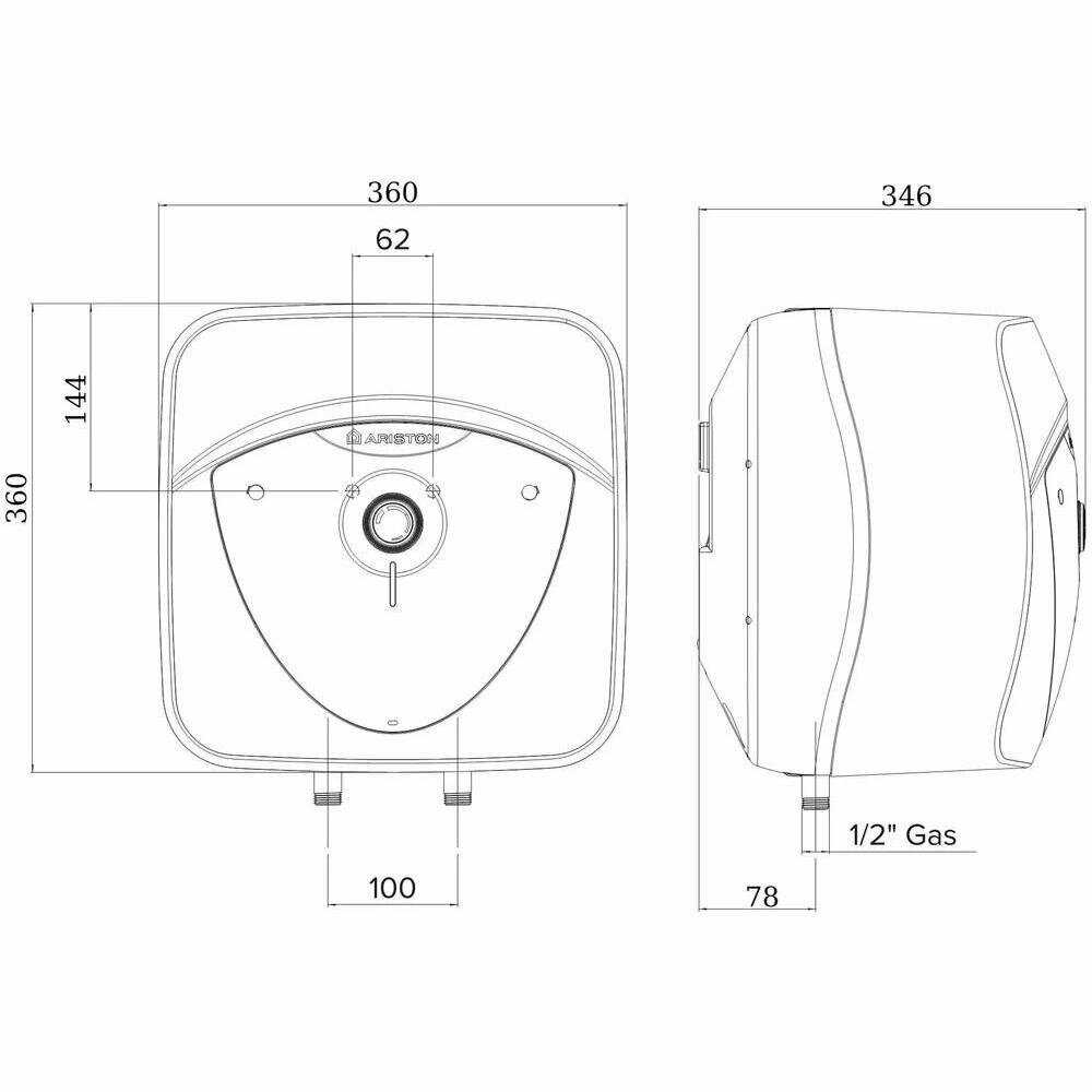 - + Главное достоинство - небольшой размер. Встал под раковину, и не видно его. Хотел купить аристон на 10 литров, посмотрел в магазине - 10 литровый и 15 литровый по толщине отличаются на пару см. Взял на 15 литров.