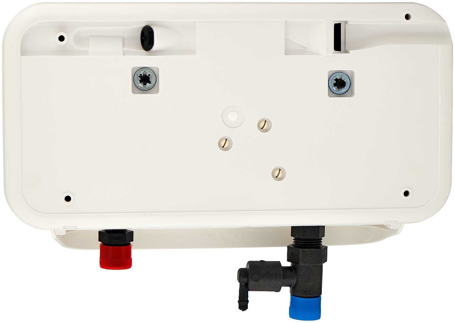 Пластиковые выводы для крепления шлангов, при монтаже он будет отходить от стенки т.к. нет бокового выхода кабеля в корпусе, а ковырять дырку в новом приборе не очень.