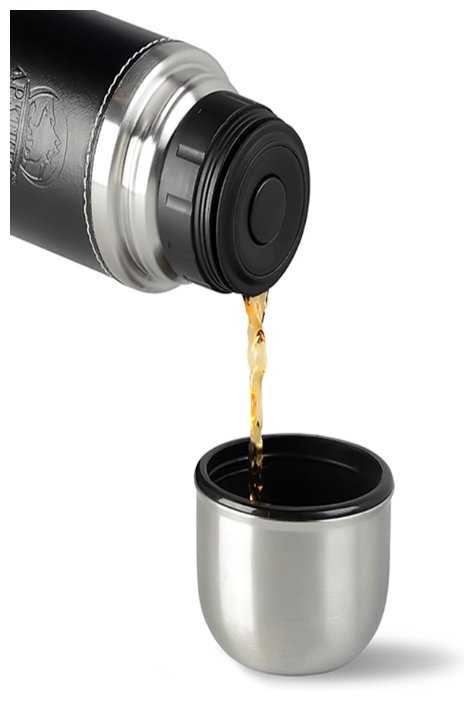 Долго держит тепло. Удобная пробка: можно наливать одной рукой, в другой держать крышку.