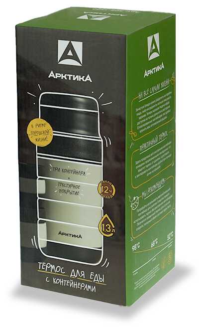 | Дополнительная информация : | позволяет хранить несколько блюд одновременно, возможно использование термоса без внутренних контейнеров |