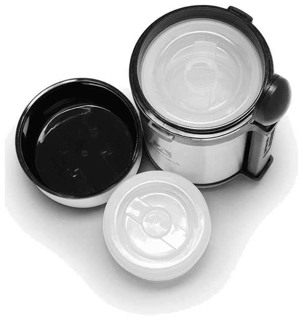- Верхний контейнер остывает быстрее; не всегда герметично при наклоне.