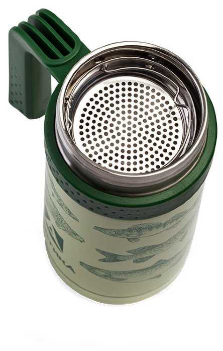 - + Классный красивый лёгкий термос. Ребёнок сам выбрал принт с рыбами, очнеь доволен.