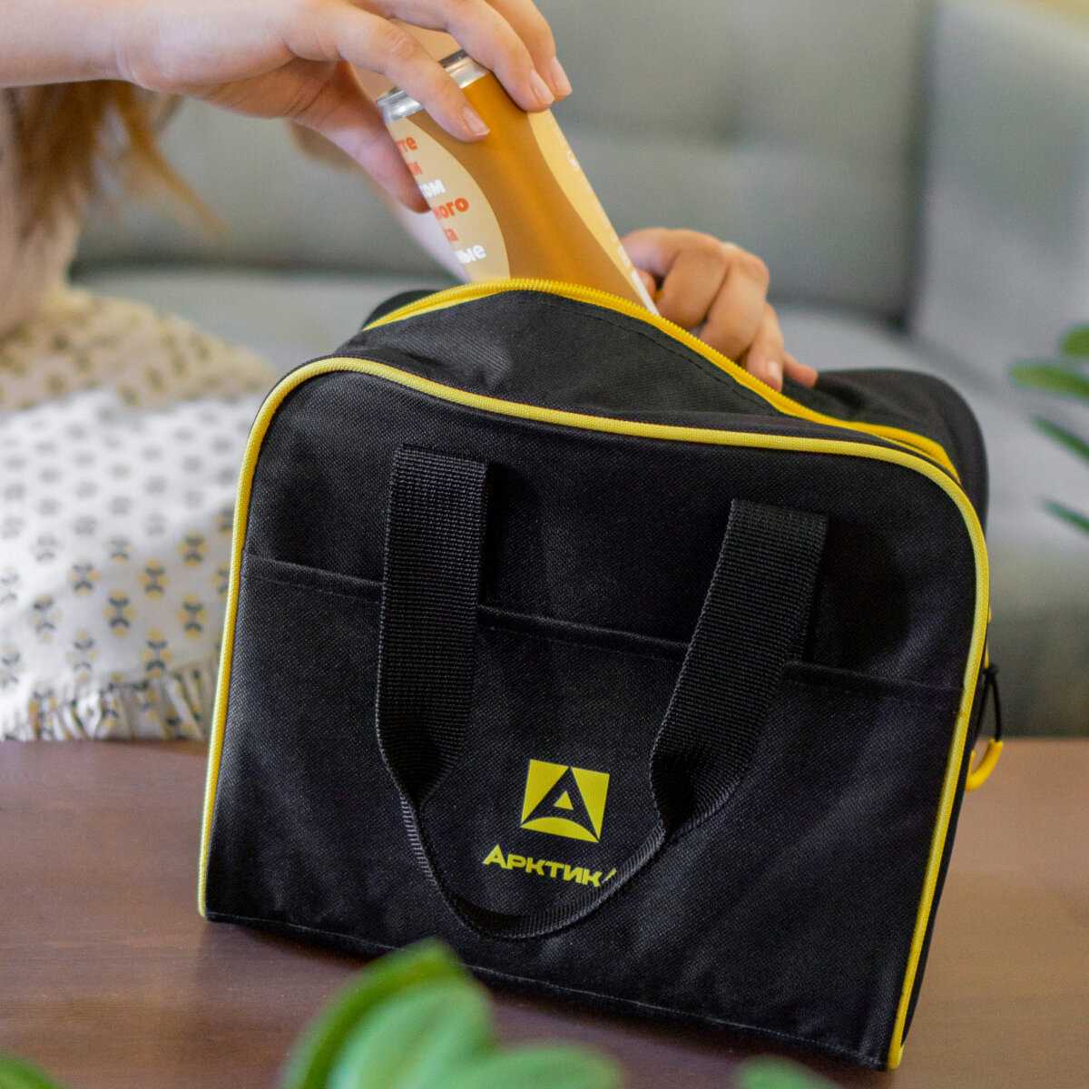 Такая милая сумочка, что готова ходить с ней каждый день на работу! Внешне никак не похожа на холодильник, очень приятная, цвет понравился, а размер... Три пластиковые литровые бутылки разливного напитка + аккумулятор холода помещаются отлично! Полтора часа в дороге - напитки доехали холодные, хладоэлемент (гелевый) даже не подтаял. Сумочка отлично держит температуру!