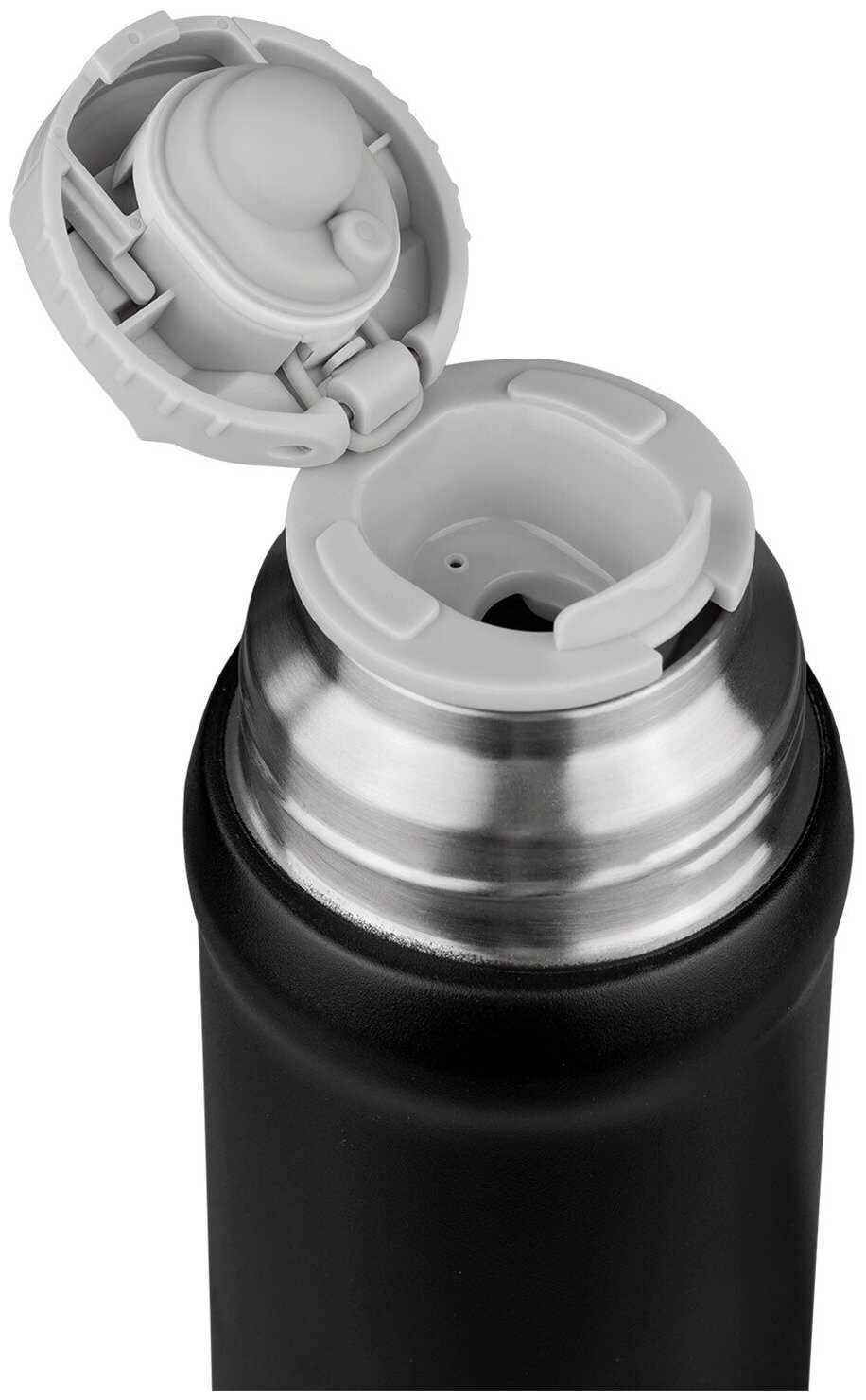 - Кнопочный механизм открывания позволяет управлять термосом одной рукой, что критично в дороге или при активном использовании.