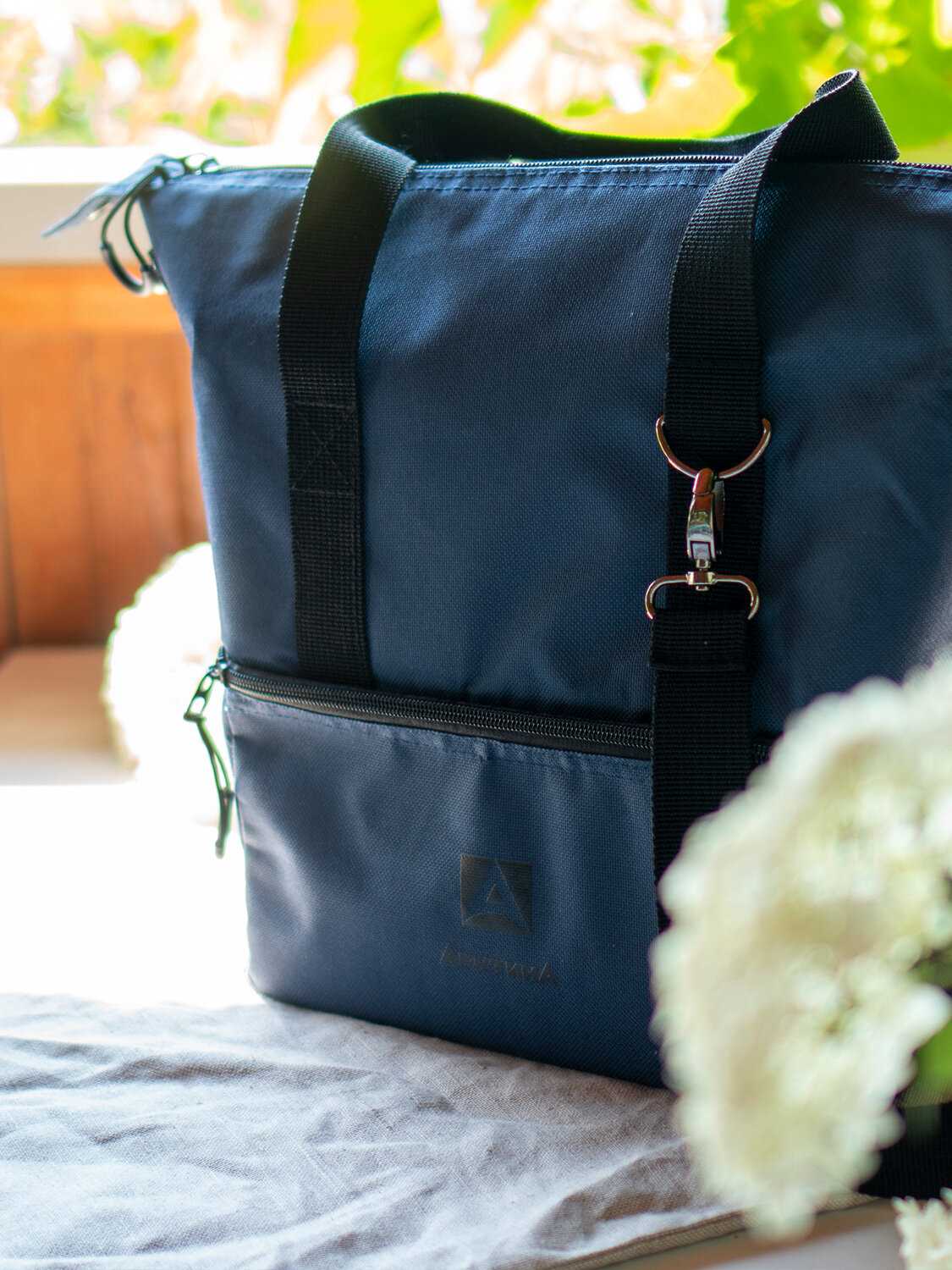 - + Отличная сумка, красивая, миниатюрная, кладу в нижний отсек с хлад элементами холодное, а наверх горячее на работу