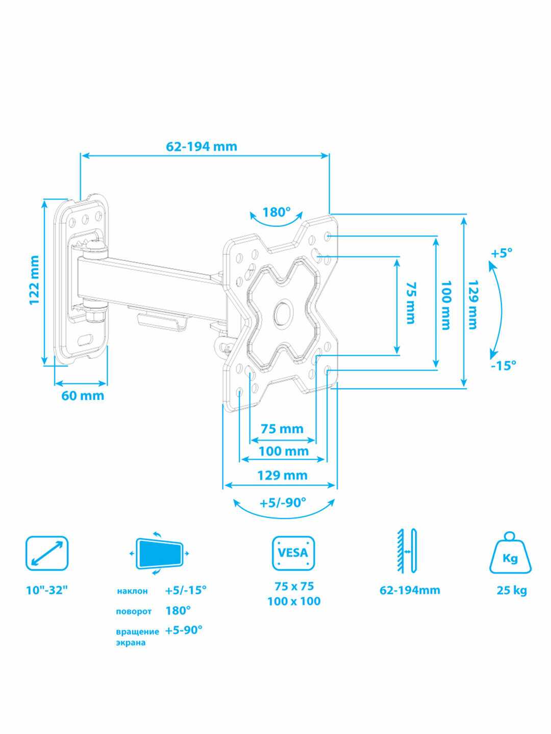 | Стандарт Vesa : | 100x100 мм, 75x75 мм |