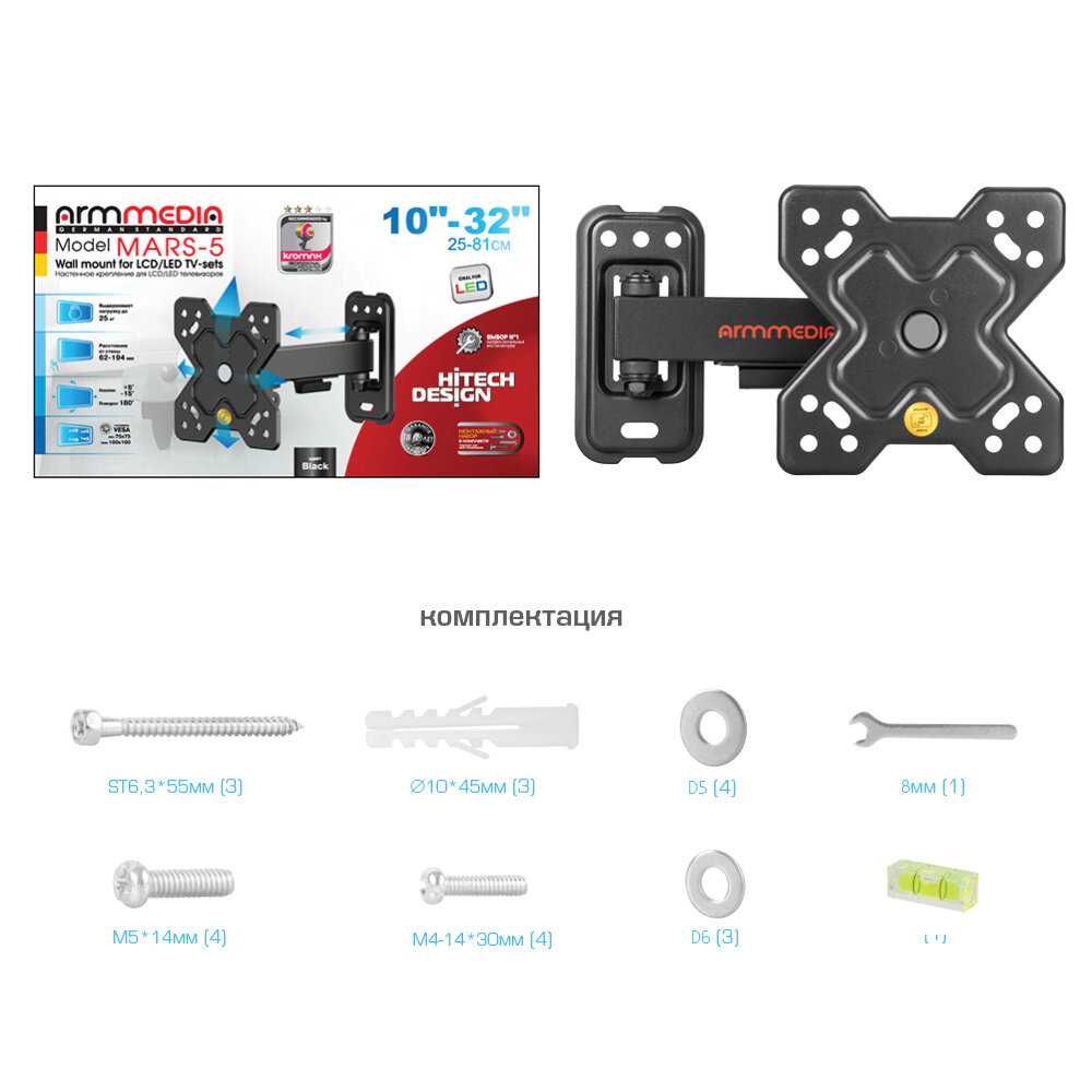 14 отзывов пользователей o Arm Media Кронштейн MARS-5 (32", VESA 100x100)