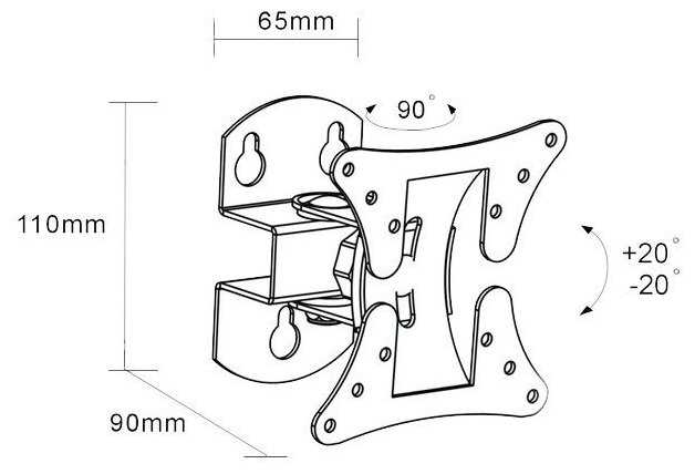 - + качественный кронштейн.отверстия совпали с отверстиями на телевизоре.наклон по горизонтали и по вертикали.как раз хватает чтобы смотреть телевизор на кровати.