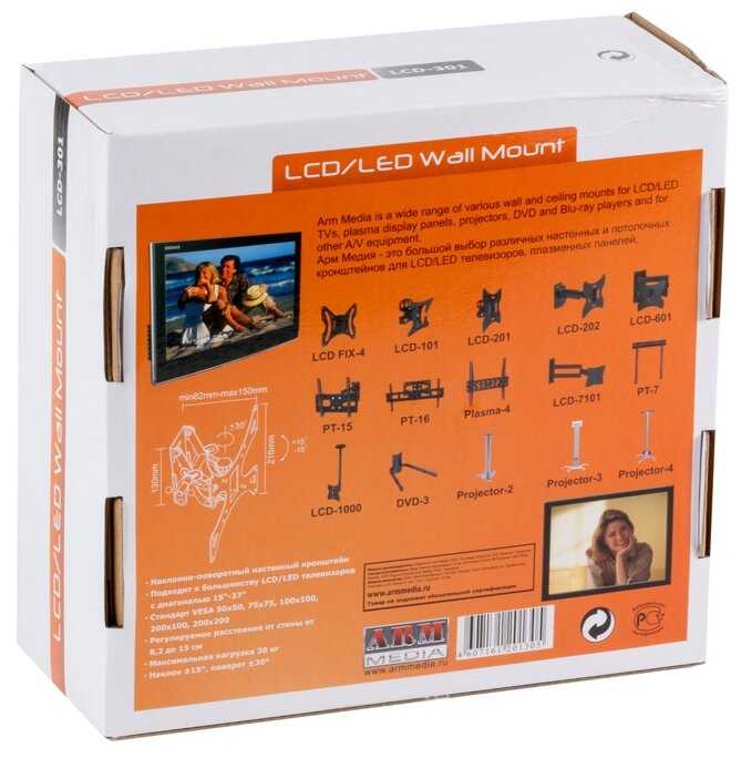 | Регулировка : | наклон, наклон и поворот, отступ от стены, поворот |