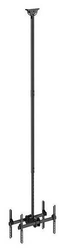 Кронштейн потолочный, под два экрана, покупался для крепления двух 90 та дюймовых телевизоров/ мониторов в бизнес-центре. Кронштейн с хорошей весовой нагрузкой (заявлен максимум 90 кг.), легко монтируется, с полным монтажным комплектом и встроенным уровнем. Конструкция кронштейна стальная, наклонно поворотная, легко регулируется. Расстояние от потолка регулируется в диапазоне 2,5-3 метра, повороты 90 градусов, наклон 5/20. Держит нормально, выдержит ли?- вопрос уже к установке, так как сам кронштейн мощный, металл хороший, если к потолку будет закреплён надёжно, то опасаться нечего. Для высоких потолков- вариант, для потолков менее 4,5 метров, наверное стоит рассмотреть аналогичную модель с меньшим расстоянием от потолка.