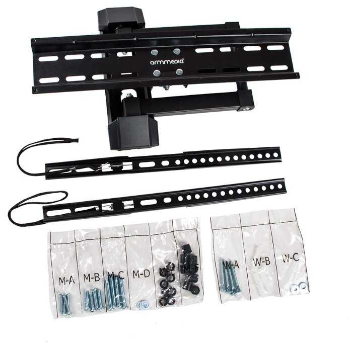 - Полный набор болтов (M6, M8 разных длин), шайб, дюбелей и проставок в комплекте для большинства телевизоров.
