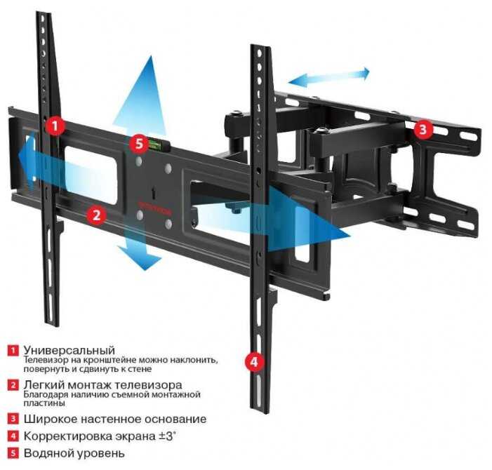- Поворот на 90 градусов невозможен на полном вылете для 50+ дюймов, ограничивая обзор в углах комнаты.