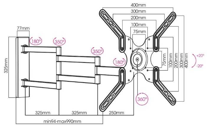- + Далеко выдвигается от стены. Можно настраивать положение телевизора в очень широких рамках