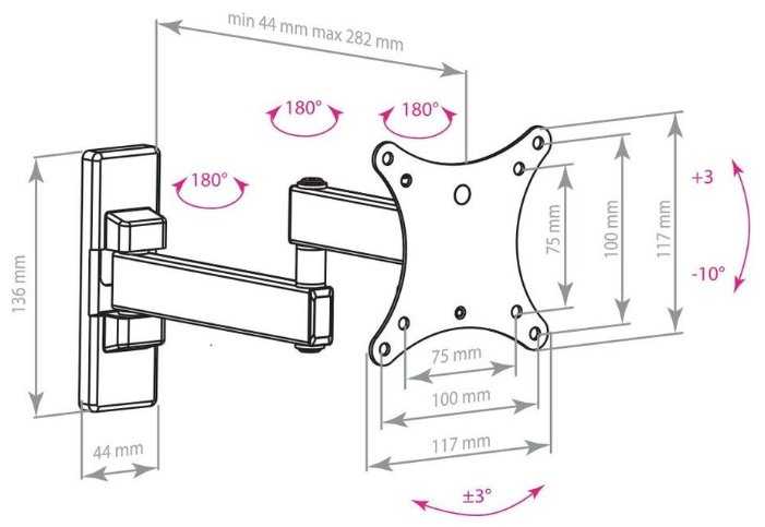 кронштейн очень удобный, использую под тв-монитор в мастерской. Регулировка в горизонтальных плоскостях-просто сказка, можно отодвинуть, или приблизить лëгким движением руки. По вертикали также регулировка очень удобна. Кроме того отличный внешний вид, хотя это было не на первом месте, но всё же.. По цене вообще молчу, бонусы выручают. Отдельно хочется отметить быструю и удобную доставку(забирал в постамате) В планах приобрести такой же и заменить на кухонном тв.