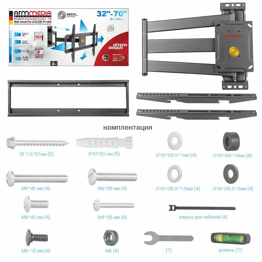 Отзывы о Кронштейн Arm Media PARAMOUNT-75 [до 70 дюймов / vesa 600x400]