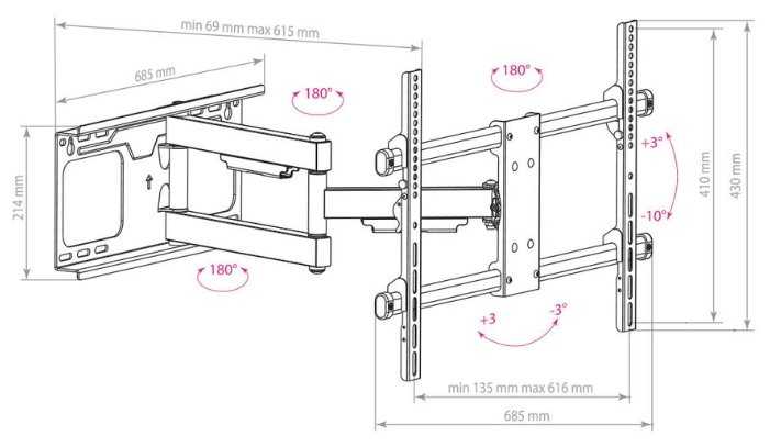 - Поворот на 90° для ТВ до 55 дюймов (иногда до 65), позволяет развернуть боком к стене.