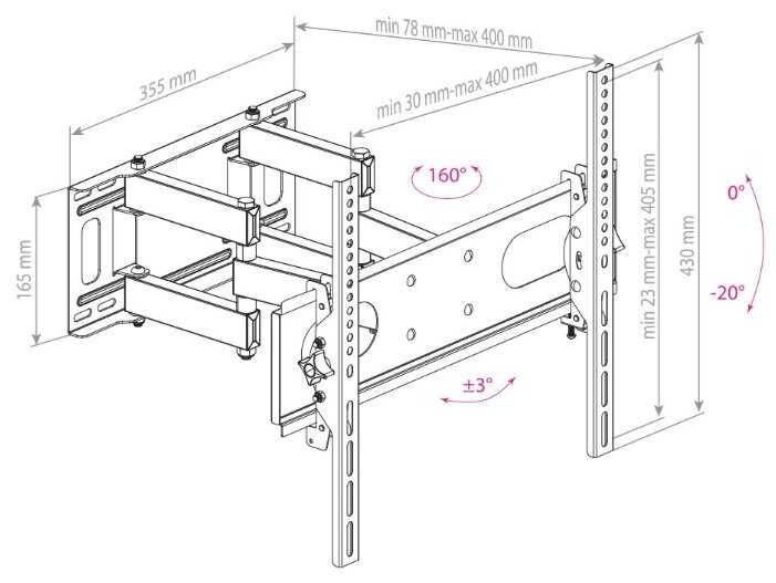 - Поворот влево-вправо до 160 градусов, выдвижение от стены 8-40 см для удобного просмотра из любой точки комнаты.