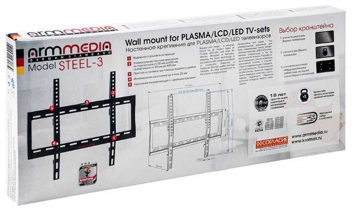 - - Не имеет возможности регулировки угла наклона – если не точно просверлили стену, телевизор может висеть под небольшим углом.