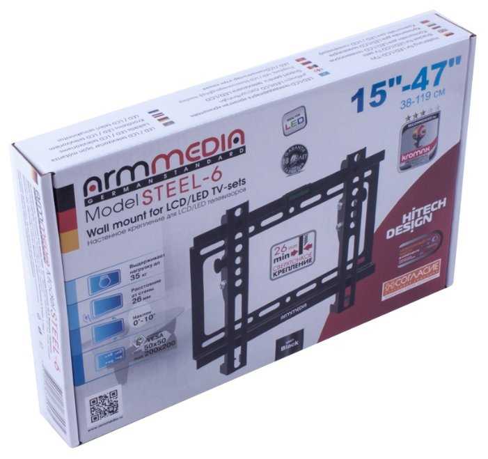 | Дополнительная информация : | Кронштейн для телевизора, комплект крепежа для установки ТВ, навесной уровень, подробная инструкция на русском языке |