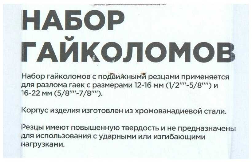 - + Хороший набор, материал колющей головки реально неплох, гайку на 22 расколол отлично.