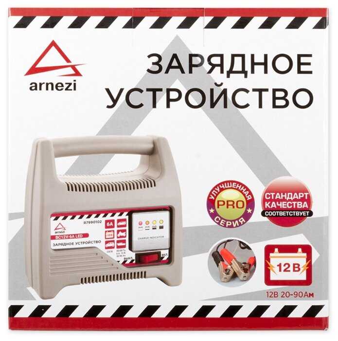 Подробная комплектация : | Зарядное устройство 12В 6A АКБ 20-90 А/ч ARNEZI R7990102 - 1 шт., Инструкция по эксплуатации, Упаковка. |