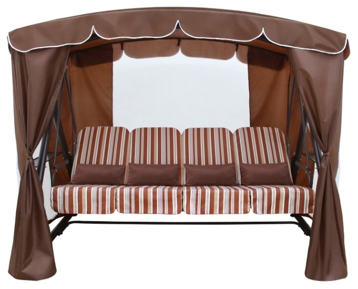 | Комплектация : | Диван цельный с мягким подголовником, тент-шатер с антимоскитной сеткой, 4 дополнительные подушки, 2 мягких подлокотника, 2 подстаканника, 2 металлических тентодержателя. |