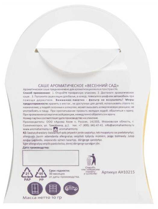 Характеристи Aroma Harmony Саше Весенний сад, 10 г
