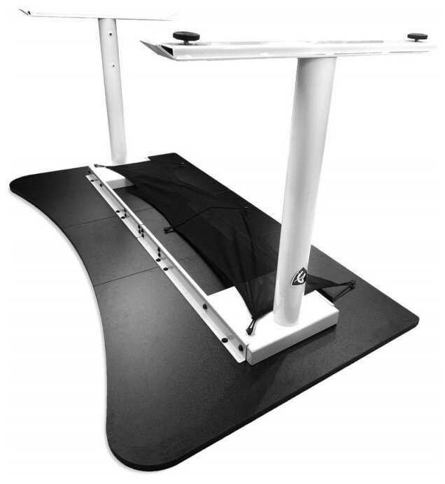 - Очень критичный лично для меня недостаток - это сочетание комплектного ковра с отверстиями в столешнице для кабелей. Судя по их размеру, подразумевается, что через них, можно повесить настольные кронштейны. Если мы используем эти отверстия для крепления кронштейна с ковром, то получаем мягкую опору для кронштейна из-за чего тот начинает шататься. Закрепить кронштейн так, чтобы в качестве опоры выступал стол, используя комплектный ковер - невозможно, ибо ковер не отгибается нормально ни на крае стола, ни через отверстия, ковер в любом случае будет мешаться для закрепления струбцины. Как итог вы решаете, использовать ли кронштейн с шаткой опорой, либо пытаться закрепить его на столе (с моими кронштейнами никак не получалось закрепить именно на столе, только если самому ковер кромсать).