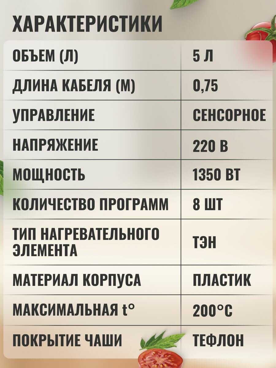 Температурный диапазон до 200°C обеспечивает быстрое запекание и хрустящую корочку, но мощность (не указана в отзывах) иногда недостаточна для большой загрузки. Таймер позволяет не следить за процессом, а продуманное меню упрощает выбор программ. Однако точное время готовки может отличаться от рецептов в инструкции. -