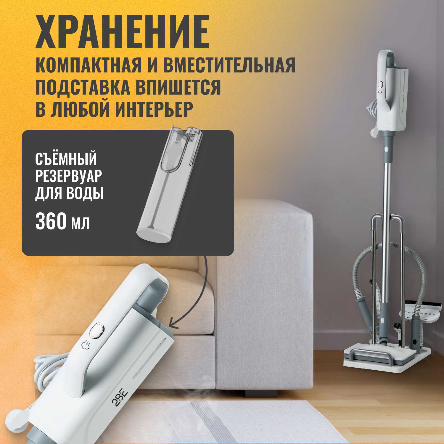 - Два режима регулируют напор, адаптируя к деликатным поверхностям как диван без разводов.