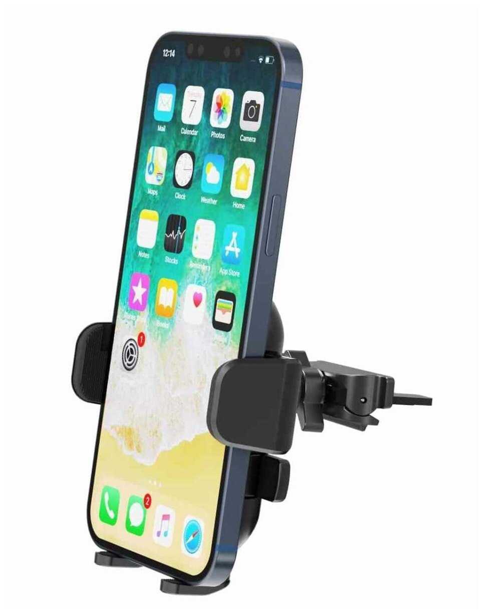 - + хорошо держит телефон, удобные рычажки для установки телефона в сам держатель, не нужно для этого раздвигать его руками.