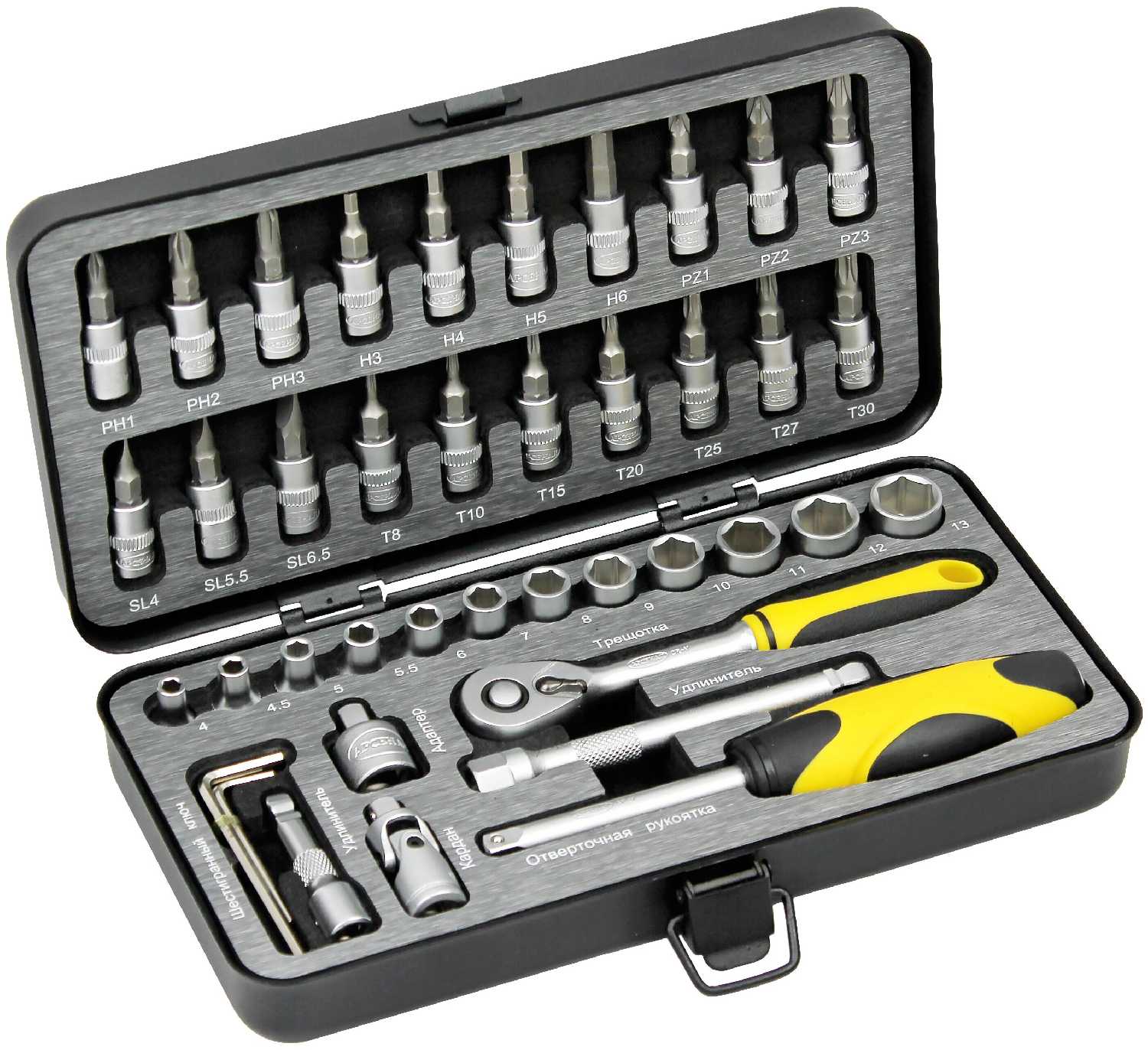 | Головки торцевые подробно : | 1/4: 4, 4.5, 5, 5.5, 6, 7, 8, 9, 10, 11, 12, 13, 14 мм, E4, E5, E6, E7, E8, длинные: 6 7 8 9 10 11 12 13 мм, с вставками 1/4":Т8 T10 T15 T20 T25 T27 T30 Ph: 1 2, Pz: 1 2 SL: 4 5.5 6.5 HEX: 3 4 5 6, 1/2: 10, 14, 15, 16, 17, 18, 19, 20, 21, 24, 27, 30, 32 мм, E10, E11, E12, E14, E16, E18, E20, E22, длинные: 14 15 17 19 22 мм, свечные: 14 16 21 мм |