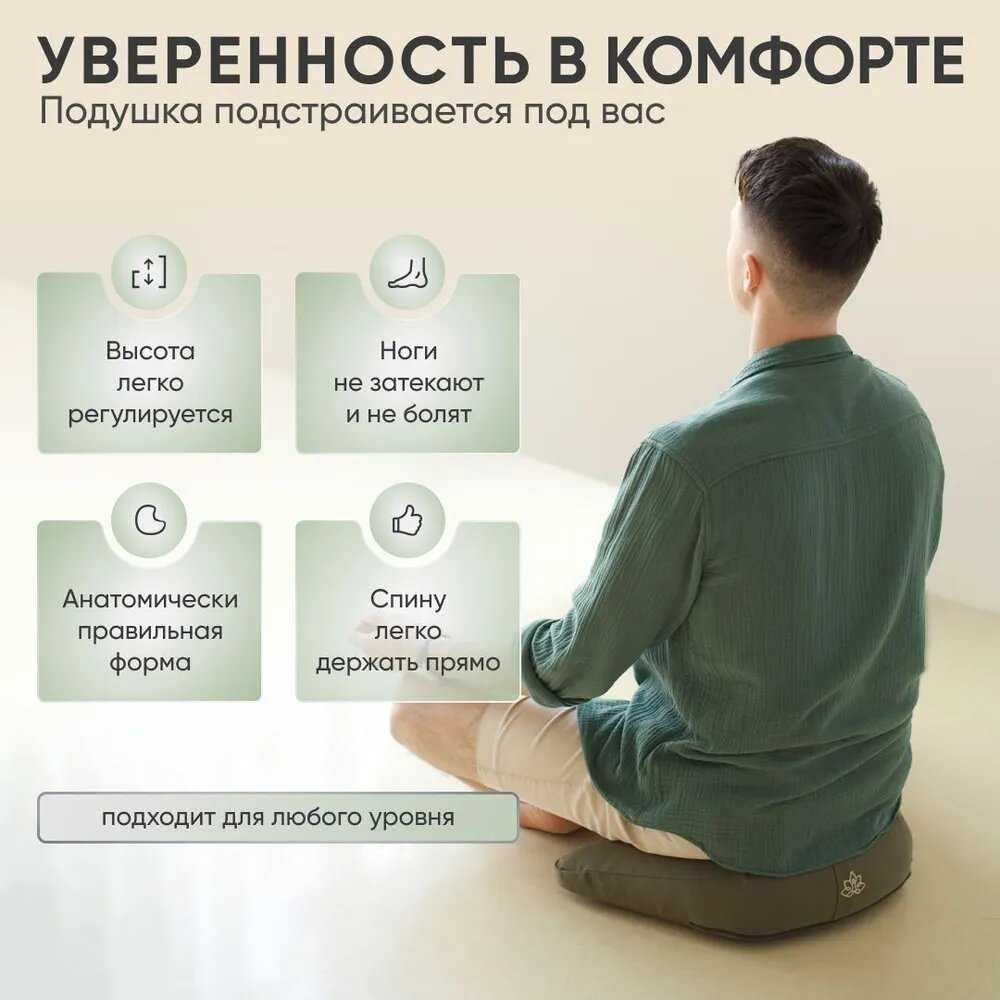 - + удобный красивый и качественно выполненный гаджет для занятий медитаций и йогой. Чехол съёмный, можно постирать.